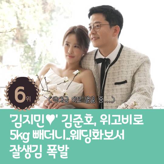 6위 : '김지민♥' 김준호, 위고비로 5kg 빼더니..웨딩화보서 잘생김 폭발
