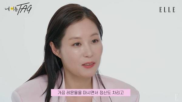 지난 27일 유튜브 채널 ‘엘르 코리아’에는 ‘폭싹 속았수다 양관식이 사랑한 오애순 그 잡채. 유채꽃내음이 지독한 문소리의 #네이름택 | ELLE KOREA’라는 제목의 영상이 올라왔다. 영상에서 문소리는 자주 쓰는 물건을 공개했다. 노란색 텀블러를 보여주면서 그는 “자주 마시는 음료가 커피보다는 레몬물이다”라며 “몸에 좋자고 먹는 건데 색깔이 여러 가지라 노란색으로 구매했다”고 말했다. 이어 “레몬물을 마시면서 정신도 차리고 비타민C도 보충한다”며 “너무 가볍고 좋다”고 말했다.