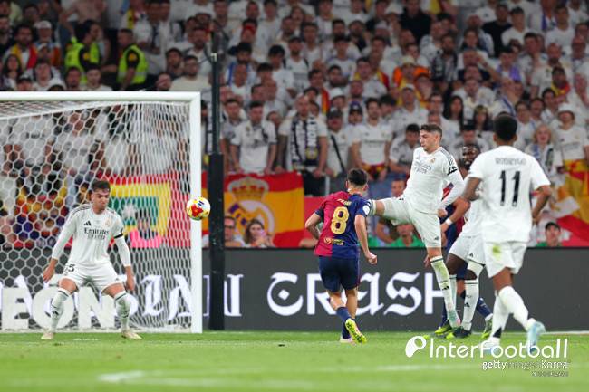 선제골을 넣은 팀은 바르셀로나였다. 전반 27분 라민 야말이 오른쪽 측면에서 공을 잡은 뒤 중앙으로 패스했고, 페드리가 지체하지 않고 날린 슈팅이 그대로 레알 마드리드 골망을 흔들었다. 전반전은 바르셀로나가 1-0으로 앞선 채 종료됐다.