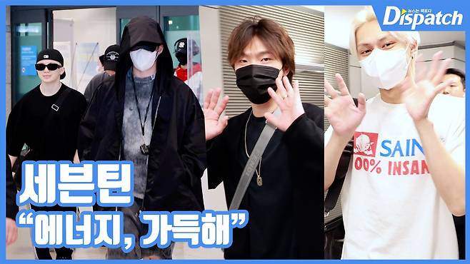 이날 에스쿱스, 조슈아, 준, 우지, 민규, 도겸, 승관, 디노는 볼캡과 후드 등을 매치하며 더욱 편안하면서 훈훈한 공항패션을 선보였다.