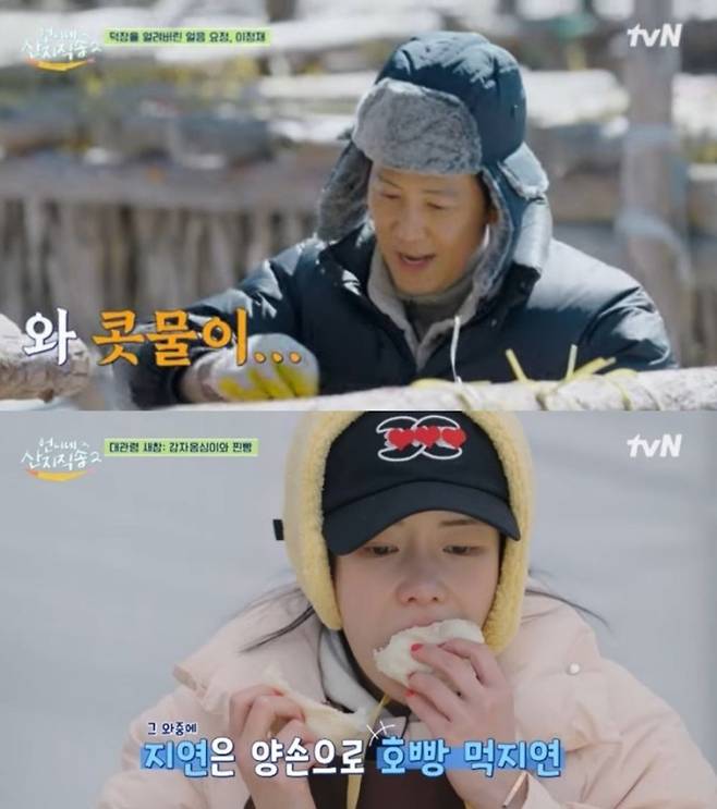 찐빵, 메밀차, 감자옹심이로 꿀맛 같은 휴식을 선물 받은 사 남매와 이정재의 모습도 흥미를 더했다. 이정재를 향한 사 남매의 질문 세례가 시작됐다. 이재욱은 "선배님과 황태를 널고 있으니까 기분이 이상하다"며 팬심을 감추지 않았다.