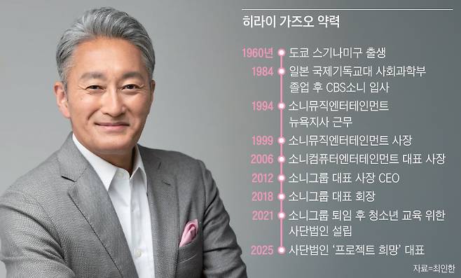 일본에서 65세 이상 고령자의 노후 생활과 성공한 최고경영자(CEO)로 은퇴한 히라이 가즈오(平井一夫·사단법인 ‘프로젝트 희망’ 대표·이하 히라이) 전 소니그룹(이하 소니) 회장의 인생 2막 스토리를 소개한다.