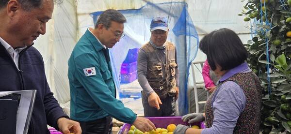 해당 농가의 첫 수확 현장에는 오순문 서귀포시장을 포함한 서귀포시 관계자들이 방문해 생산 농가를 격려하고 농업 현장의 어려움을 청취했다.