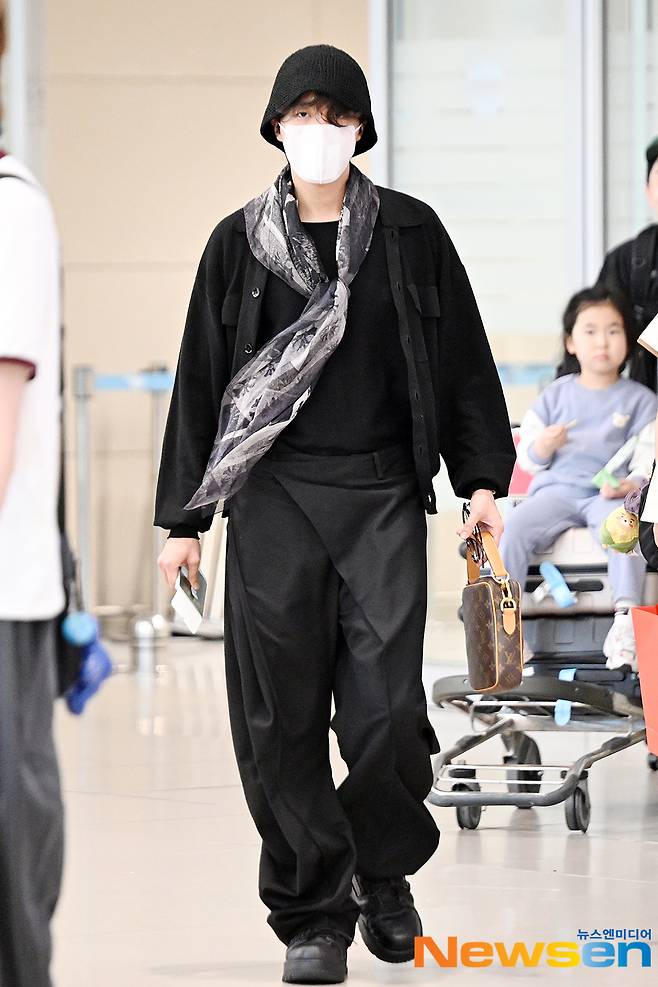 방탄소년단(BTS) 멤버 제이홉(JHOPE)이 4월 28일 오후 인천 중구 운서동 인천국제공항 제 2여객터미널을 통해 해외 일정을 마치고 싱가포르에서 입국하고 있다.