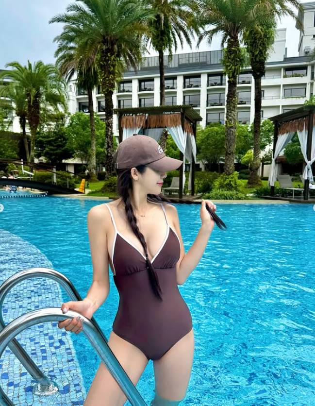 사진 속 김연정은 대만의 한 고급 리조트 수영장에서 수영복 차림으로 휴식을 만끽하는 모습이다.