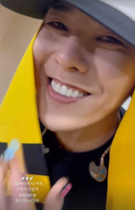 28일 지드래곤의 스태프가 운영하는 팔로미 계정 스토리에는 '그 남자의 작사, 작곡 거들먹 거들먹'이라는 글과 함께 영상이 게재됐다.