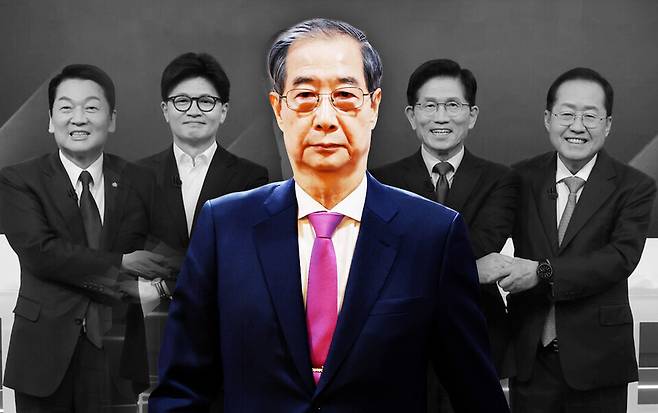 정치권에선 '한덕수 대망론'이 국민의힘 경선 흥행에 찬물을 끼얹는 악재가 됐다는 분석이 나온다. 한덕수 대통령 권한대행이 국민의힘 후보와 단일화에 나설 것이란 전망이 나오면서 '경선 1등 후보'의 위상과 관심도가 모두 떨어졌다는 시각이다. 나아가 경선 과정에서 빚어진 찬탄(탄핵 찬성)파와 반탄(탄핵 반대)파간 거친 네거티브(비방)전도 지지율 상승을 막는 장애물이 됐다는 지적이 제기된다.