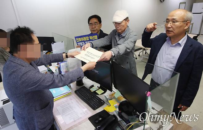 | ▲ 진화위 박선영 위원장 사퇴하라! (사)오월어머니집, (사)5·18서울기념사업회, 민족문제연구소 등 27개 단체 주최로 28일 오후 서울 중구 진실·화해를위한과거사정리위원회 앞에서 열린 박선영 진화위원장 퇴진촉구 기자회견에서 참석자들이 박 위원장의 퇴진 촉구 성명서를 민원실에 제출하고 있다. |
