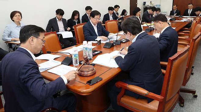 ▲ 28일 국회 행정안전위원회에서 열린 제1차 예산·결산기금심사소위원회의에서 더불어민주당 소속 위성곤 소위원장이 2025년도 제1회 추가경정예산안을 상정하고 있다.