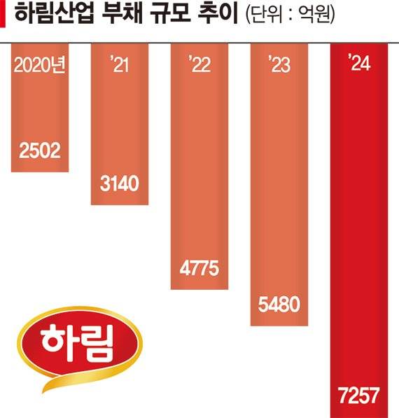적자 지속에 하림산업은 관계사인 NS홈쇼핑으로부터 두 차례에 걸쳐 280억원을 빌렸다. 또 모회사인 하림지주로부터 수 백억원의 유상증자도 받았지만 재무구조는 개선되지 못하고 있다.