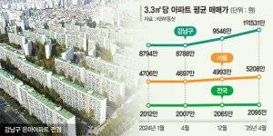 강남구 3.3㎡당 1억 뚫었다… 서울 평균 5208만원의 두배