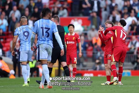 한편 토트넘은 28일 영국 리버풀 안필드에서 펼쳐진 리버풀과 2024/25 PL 34라운드 원정 경기에서 1-5로 완패하며 '우승 들러리'가 됐다. 전반 12분 도미닉 솔랑케가 선제골을 터뜨렸으나 이후 루이스 디아스, 알렉시스 맥 알리스터, 코디 각포, 모하메드 살라, 데스티니 우도기(자책골)에게 차례로 실점하며 자멸했다.