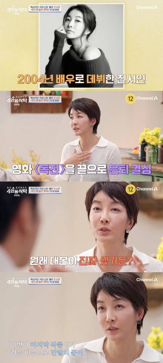 28일 방송된 채널A ‘절친 토큐멘터리 – 4인용식탁’(이하 4인용식탁)에는 배우 진서연이 출연, 절친인 배우 음문석과 수영을 초대해 이야기를 나누었다.