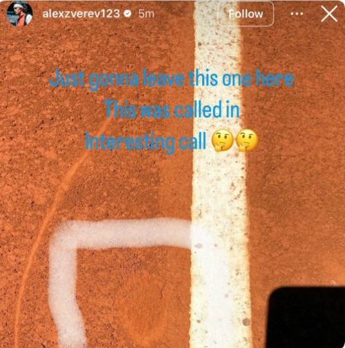 경기 후, 즈베레프는 자신의 인스타그램에 촬영한 볼 마크의 사진을 올렸다.