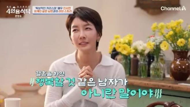 결혼 12년차 진서연은 남편과의 러브스토리를 공개했다. 진서연은 남편을 만났을 때를 언급하며 “결혼할 사람은 처음부터 촉이 온다. 근데 이게 좋겠나?”라며 “우리 남편 캐릭터가 엄청 독특하다. 결혼을 하면 행복할 것 같은 남자가 아니다. 그런데 이 사람과 결혼하겠네 촉이 오는 거다”라고 털어놨다.