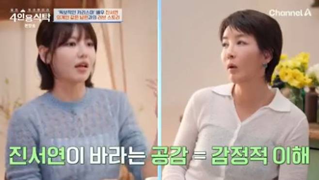 28일 채널A ‘절친 토큐멘터리 4인용 식탁’에선 진서연, 수영, 음문석이 절친 토크를 펼치는 모습이 그려졌다.