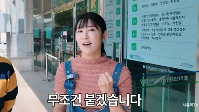 영상에서 사유리는 동네 부동산 사장님을 찾아 모르는 단어를 물어보며 운전면허 필기시험 공부를 했다. “이번에는 합격해야 한다. 30번이나 떨어졌다”라며 투지를 불태우며 공부에 매진하는 사유리. 드디어 시험 당일, 밤새 시험공부를 했다는 사유리가 자신 가득한 모습으로 면허 시험장을 찾았다. 사유리는 “서울대 입학시험처럼 긴장 된다. 느낌이 좋다”라며 “어떤 할머니가 100번 시험 보다가 성공했다. 아직 나는 100번 까지 안 갔으니 할 수 있다”라고 말했다.