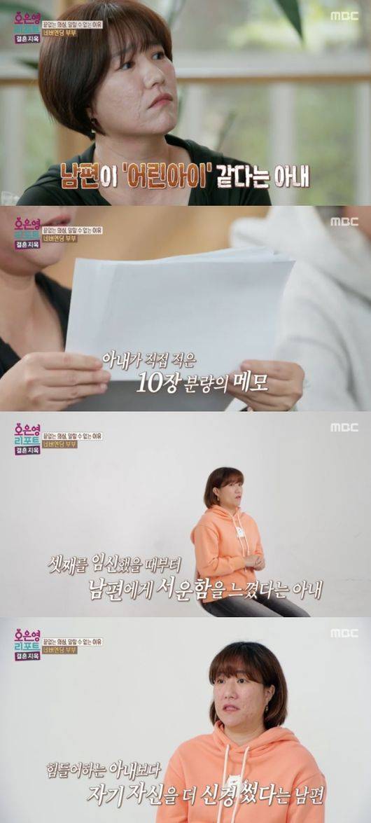 28일 방송된 MBC 예능 프로그램 '오은영 리포트-결혼 지옥’(이하 결혼지옥)에는 남편이 ‘소시오패스’라 주장하는 아내와 그런 아내의 눈치를 보는 남편, 결혼 7년 차 '네버엔딩 부부’가 출연했다.