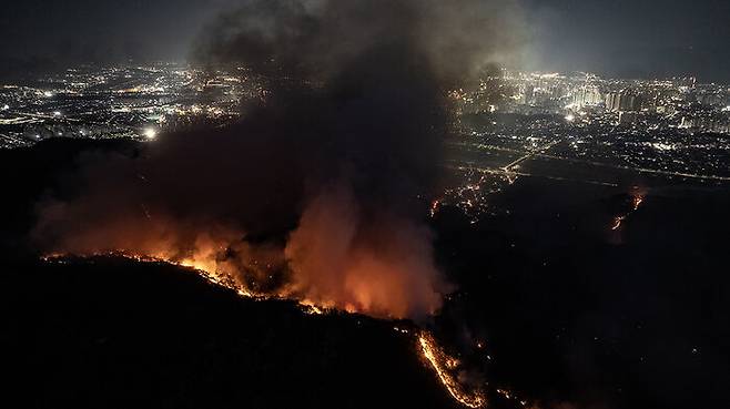 산림 당국은 "건조한 날씨로 산불 확산 속도가 빨랐던데 반해, 임도가 없는 험준한 지형에서 통로를 개척해가며 진화작업을 이어간 탓에 야간 진화에 어려움이 있었다"며 "주불 진화에 총력을 다하고 있다"고 밝혔습니다.
