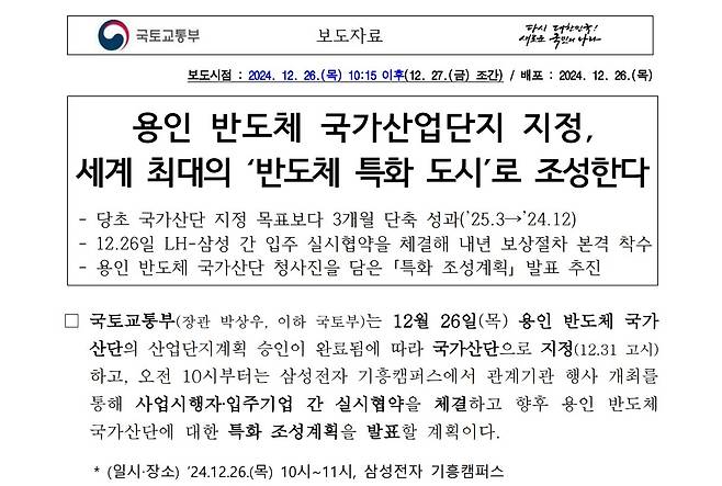 | ▲ 국토교통부는 당초 목표보다 3개월이나 빨리 국가산단을 지정해서, 시스템반도체 단지 조성을 한다고 발표했다. |