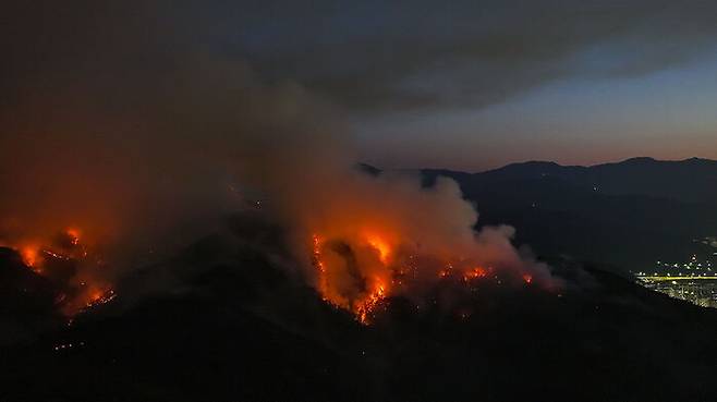 산림 당국은 "건조한 날씨로 산불 확산 속도가 빨랐던데 반해, 임도가 없는 험준한 지형에서 통로를 개척해가며 진화작업을 이어간 탓에 야간 진화에 어려움이 있었다"며 "주불 진화에 총력을 다하고 있다"고 밝혔습니다.
