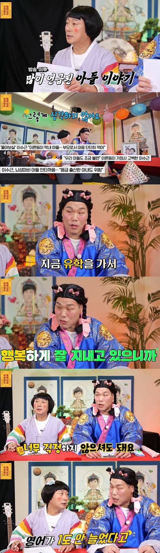 사연을 소개한 후 이수근은 "우리 아들 얘기가 많이 나온다"며 운을 뗐다. 이어 "(아들의 상태가) 그렇게 심각하지 않는다. 기사에는 너무 심각하게 나온다"고 덧붙였다.