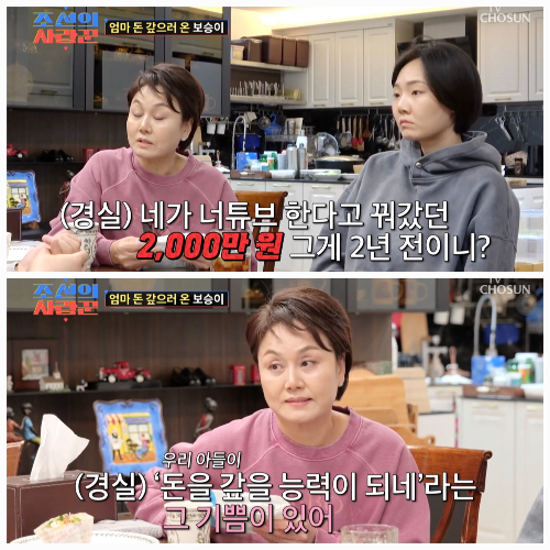 28일 방송된 TV조선 '조선의 사랑꾼'에서는 손보승이 모친 이경실에게 빌린 2천만 원을 새 돈으로 준비해 직접 건네는 장면이 공개됐다.