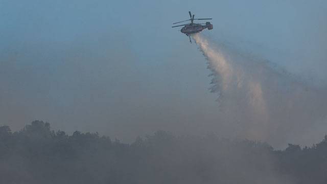 대구 북구 노곡동 함지산에서 난 대형 산불로 산림 당국이 산불 3단계를 발령한 가운데, 해가 뜨면서 본격적인 헬기 진화가 시작됐습니다.