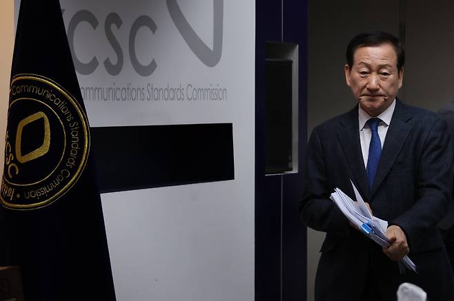 | ▲ 류희림 방송통신심의위원장이 3월 10일 서울 양천구 목동 방송통신심의위원회에서 전체회의를 주재하고 있다. |