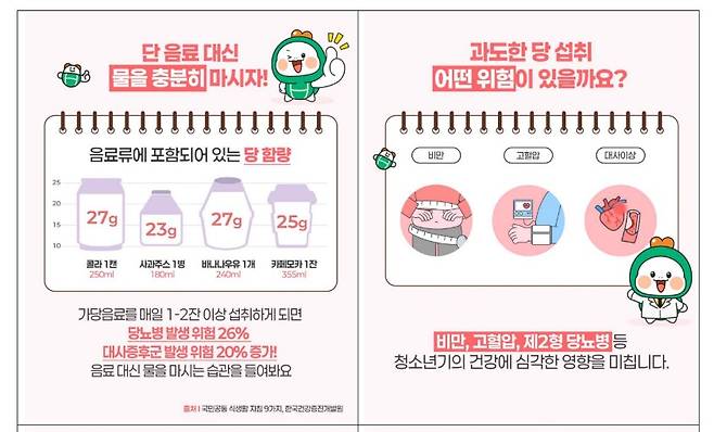 건강증진개발원 김헌주 원장은 “청소년기 식습관은 평생 건강을 좌우하는 중요한 기반이 되는 만큼, 과도한 당류 섭취를 줄이고 균형잡힌 식생활을 실천하는 것이 필요하다”고 강조했다.