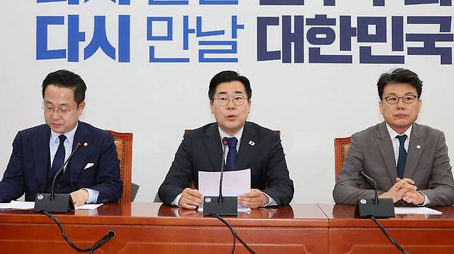 ▲ 더불어민주당 박찬대 당 대표 직무대행 겸 원내대표가 29일 서울 여의도 국회에서 열린 원내대책회의에서 발언하고 있다.