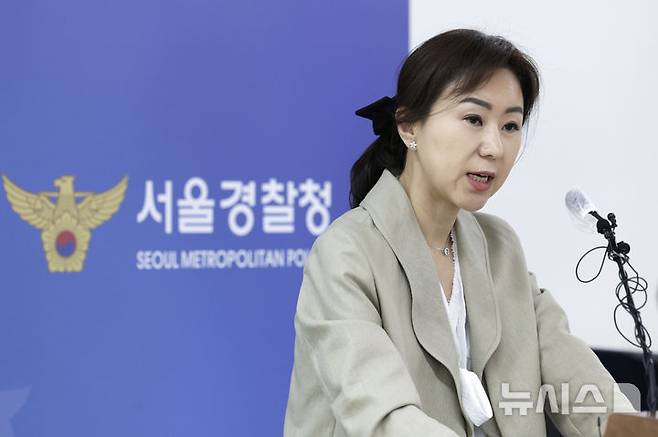 [서울=뉴시스] 최동준 기자 = 29일 서울 종로구 서울경찰청에서 이숙영 사이버수사 3대장이 아동·청소년 성착취 등 사이버 성폭력 사범 검거 브리핑을 하고 있다.
