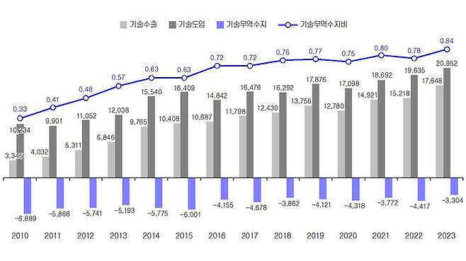 재작년 기술 무역 규모 386억 달러로 최대…33억 달러 적자