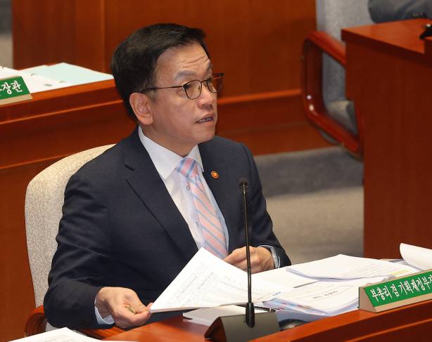 [최상목 경제부총리 겸 기획재정부 장관이 29일 국회에서 추가경정예산(추경)안을 심사하는 종합정책질의 등을 위해 열린 국회 예산결산특별위원회 전체회의에 참석해 의원 질의에 답변하고 있다. (사진=연합뉴스)]