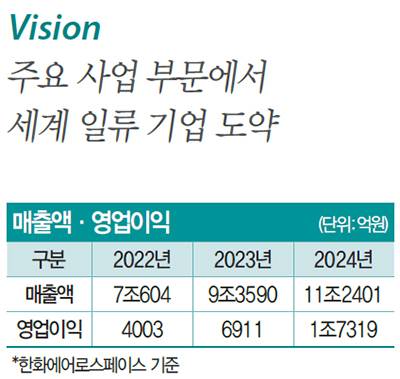 김 부회장이 경영을 맡은 이후 한화에어로스페이스 실적은 날개를 달았다. 한화에어로스페이스의 지난해 영업이익은 1조7319억원으로 전년 대비 무려 190% 증가했다. 지난해 매출도 11조2401억원으로 같은 기간 42% 늘었다. 특히 방산 부문 수출이 내수를 넘어서 글로벌 방산 기업으로 자리 잡았다는 평가다. 한화에어로스페이스는 올해 매출 30조원, 영업이익 3조원을 달성하겠다는 목표다.