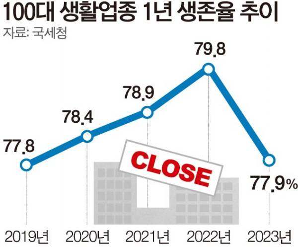 100대 생활업종 사업자의 1년 생존율은 2023년 기준 77.9%로 집계됐다.