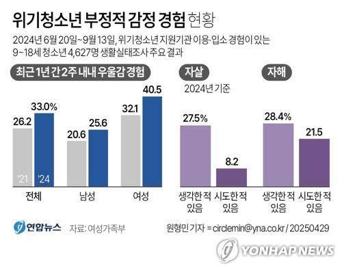 [그래픽] 위기청소년 부정적 감정 경험 현황