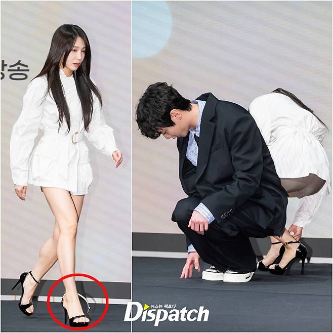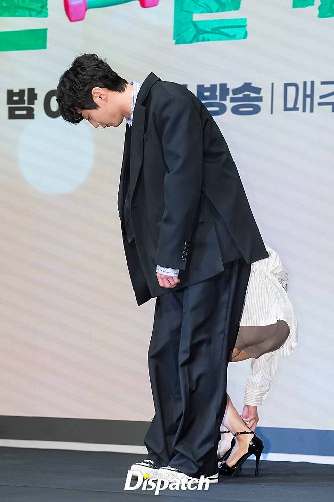 이준영의 매너가 시선을 끌었다. 정은지는 입장 도중 구두 스트랩이 풀렸다. 짧은 핫팬츠를 착용한 정은지의 노출을 염려한 이준영이 취재진의 촬영을 가렸다.
