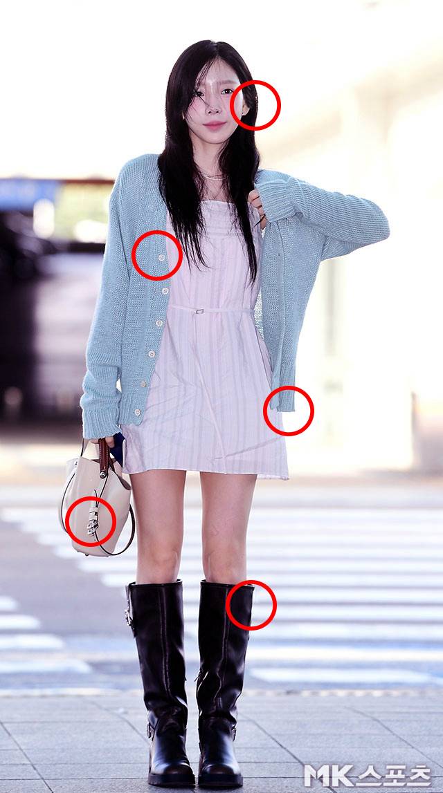 태연 “선크림만 바른 듯. 출국길 ‘꾸안꾸 쌩얼’로 공항패션 완성” [틀린그림찾기]