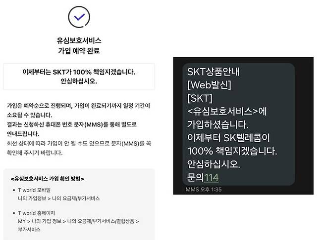 SK텔레콤은 유심 보호 서비스 예약 접수, 예약보호 서비스 완료 안내, 예약가입 완료 안내 등 인터페이스(UI) 등을 개선했다. 또 SK텔레콤이 서비스 가입 후 피해를 100% 책임지겠다는 내용의 메시지 등을 추가했다.