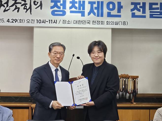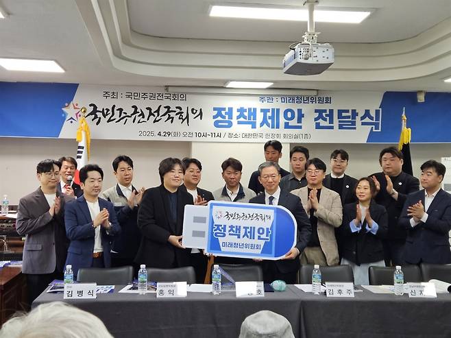 이날 열린 국민주권전국회의 정책제안 전달식은 국민주권전국회의가 주최하고 산하 미래청년위원회가 주관하여 더불어민주당 정성호 인재위원장에게 정책제안을 유에스비에 담아 전달하는 퍼포먼스 형태로 진행됐다.