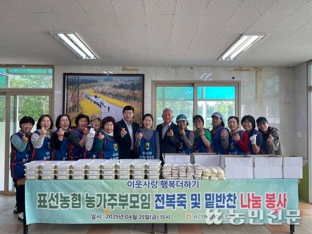 제주 서귀포 표선농협(조합장 김용우) 농가주부모임(회장 이정신)이 25일 표선생활체육관(표선면 하천리)에서 ‘전복죽 및 밑반찬 나눔 봉사’를 했다(사진),