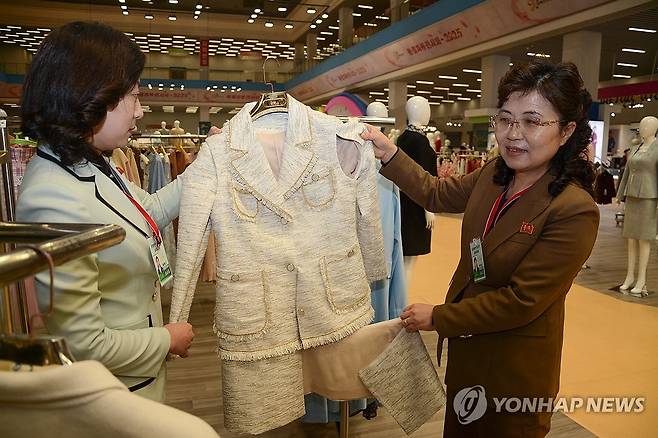 (평양 조선신보=연합뉴스) 북한이 지난 11~23일 평양 3대혁명전시관에서 개최한 '봄철피복전시회-2025'에서 팔소매와 옷단을 분리해 한 벌로 여러 형태를 연출할 수 있는 '걷옷'이 이전 전시회에서 첫 선을 보인 후 인기가 높아 이번 전시회에는 봄철용으로 새롭게 만든 형태를 내놓았다고 조선신보가 29일 전했다. 2025.4.29