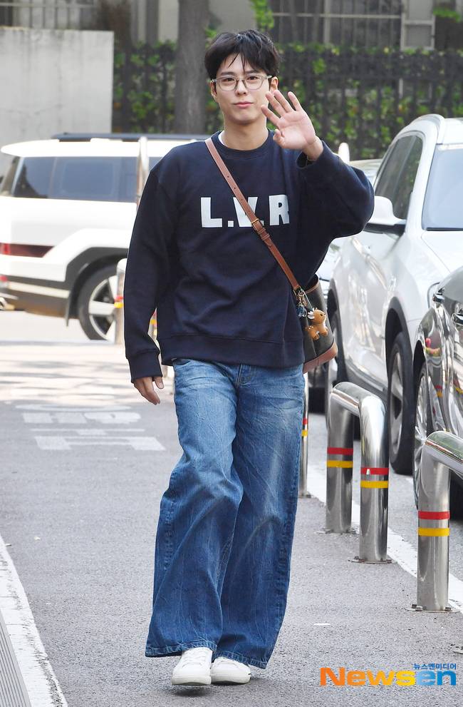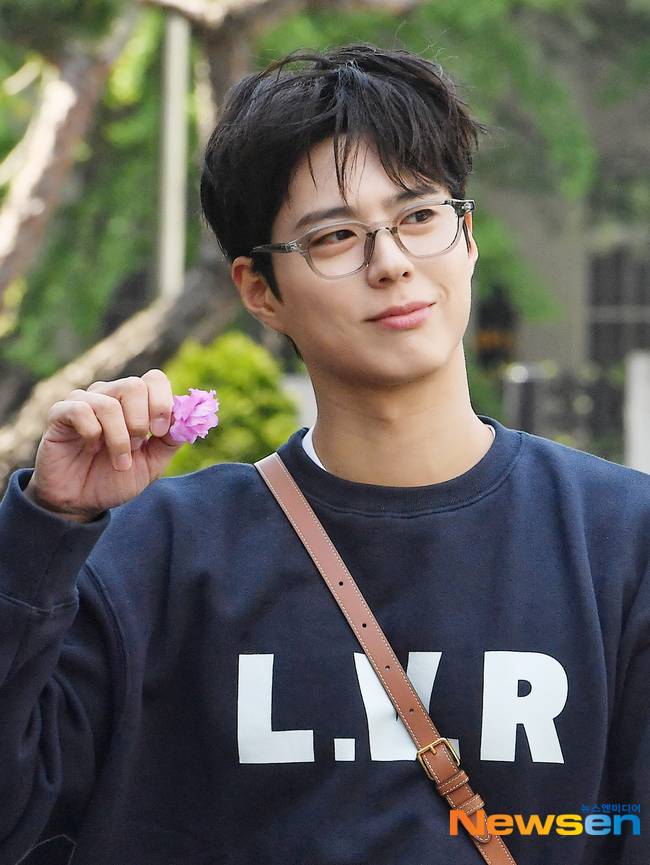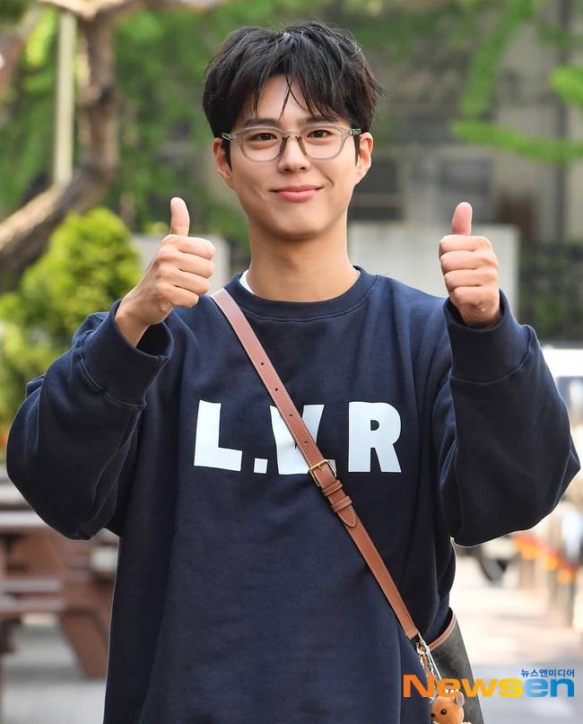 이날 박보검은 네이비 컬러 맨투맨 티셔츠에 청바지를 입고 크로스백을 멘 채 발랄한 캐주얼룩을 소화했다. 특히 뿔테안경을 착용하고 캠퍼스 남신 같은 풋풋한 매력을 뽐내 시선을 사로잡았다.