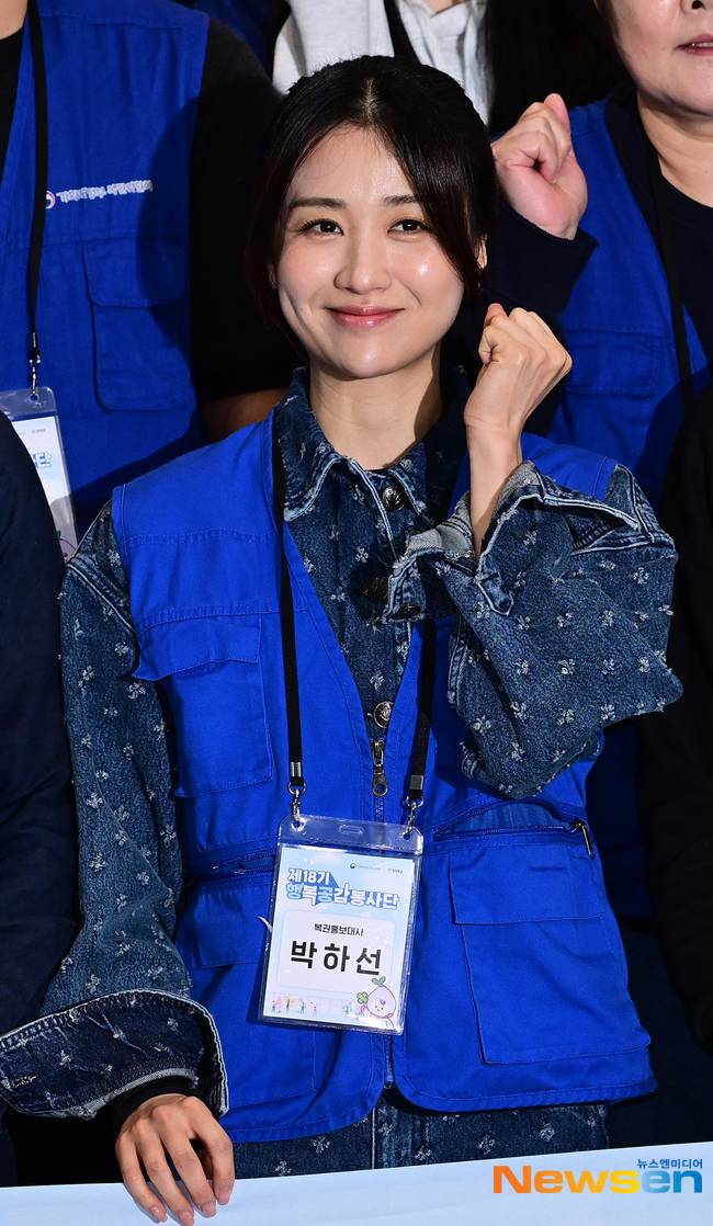 이날 박하선은 청색 셔츠에 파란색 작업복 조끼를 입고 명찰을 단 채 작업에 임했다. 머리를 질끈 묶고 옅은 화장을 한 박하선은 화려한 스타일링 없이도 자체발광하는 미모를 뽐냈다.