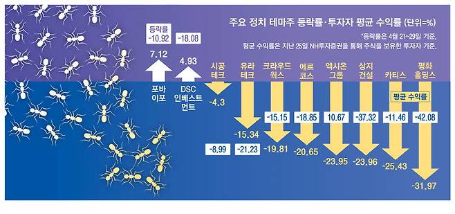 벌써 무너진 정치테마株 … '빚투' 개미들 패닉