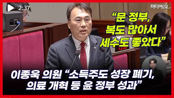 이종욱 국민의힘 의원이 문재인 정부가 복이 많아서 세수가 좋았다며 코로나로 인한 확장 재정과 초과 세수 사용이 윤석열 정부엔 악전고투 요인이 됐다고 평가했다.