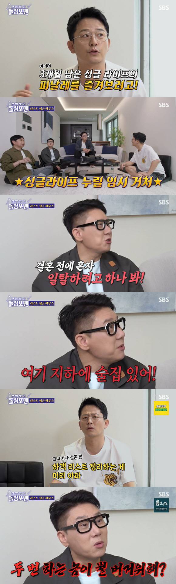 이에 이상민은 "결혼 전에 혼자 일탈하려고 하나보다"면서 "여기 지하에 술집 있다"고 폭로해 웃음을 자아냈다.