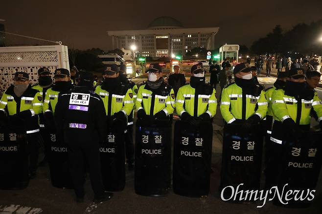 | ▲ 윤석열 전 대통령이 지난해 12월 3일 오후 비상계엄을 선포한 가운데 경찰 병력이 여의도 국회를 에워싸고 외부인의 출입을 통제하고 있다. |