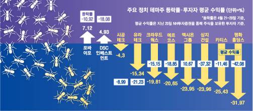 ‘들쭉날쭉’ 정치테마주에 잠 못 이뤘는데…투자자 93%는 돈 잃었다